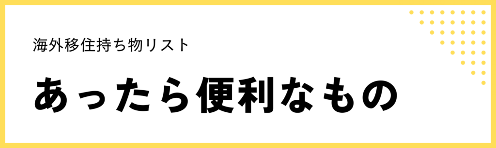 - 海外移住の際に「日本から持っていくもの・持ってきて良かったもの」リスト