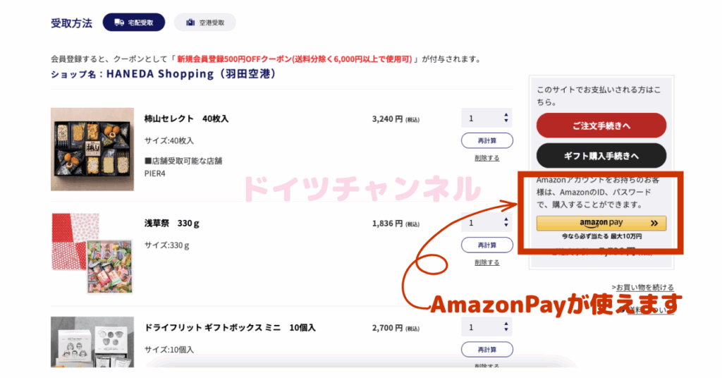 Haneda Shopping以外のショップ(ブランド)から購入する場合は、Amazon Payが使えない場合もあります。その場合はクレジットカード決済のみ利用可能となります。