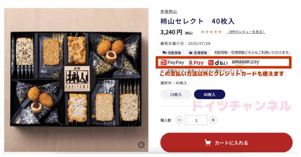 商品の受け取り方法や購入ショップによっては、決済方法が限られる場合がありますので、商品ページまたは買い物カゴのページで利用可能な決済方法を確認しましょう。